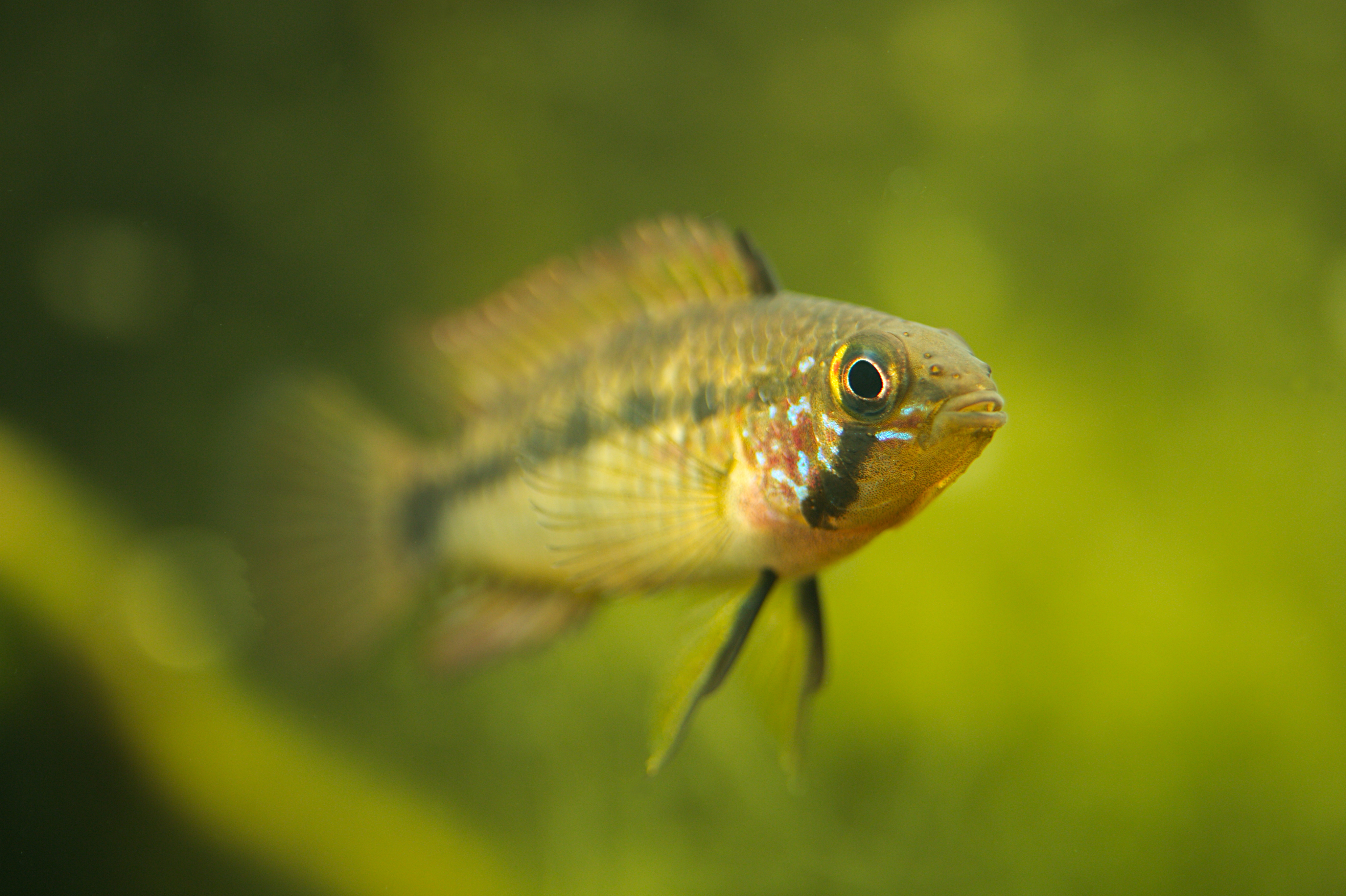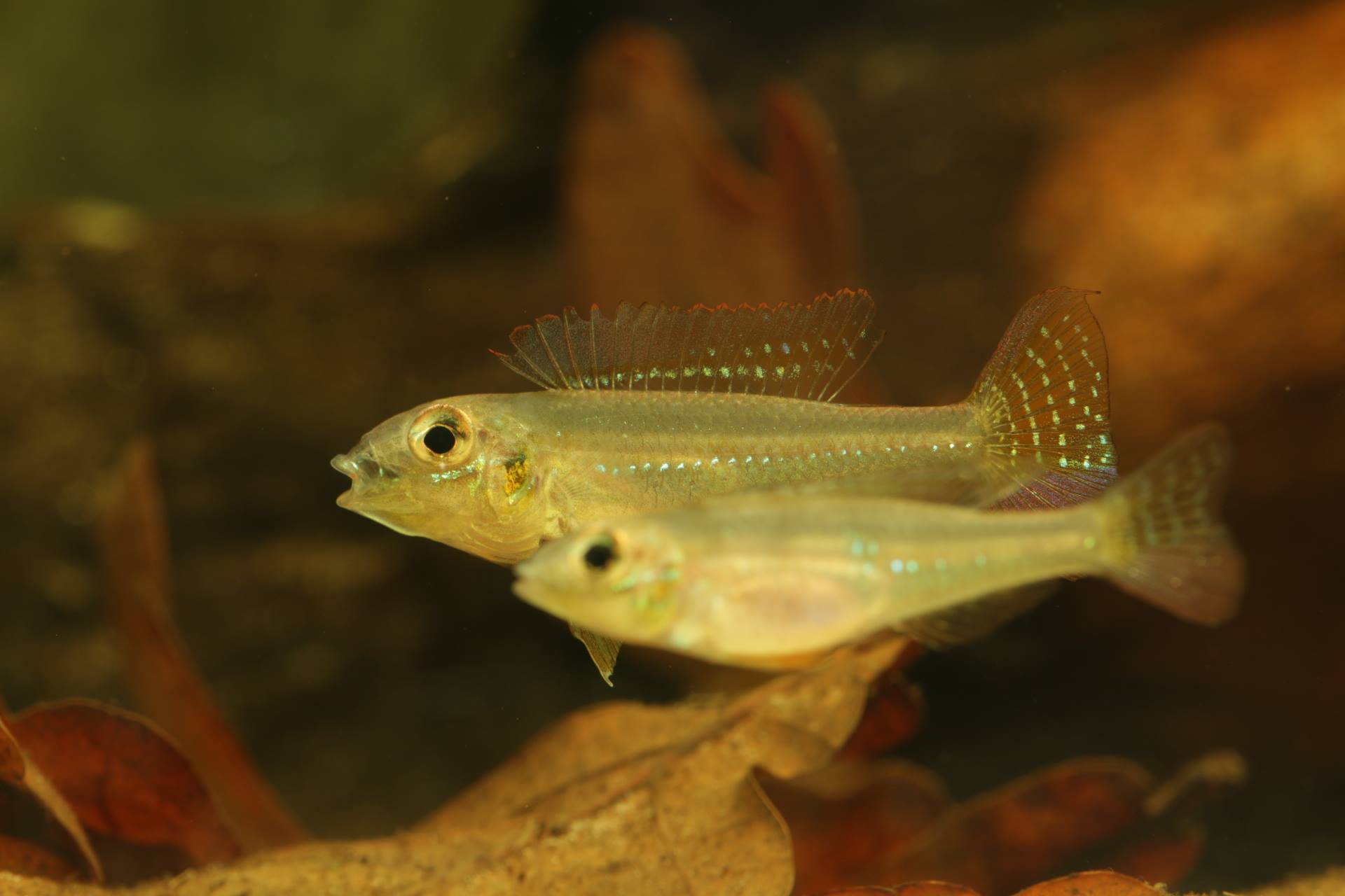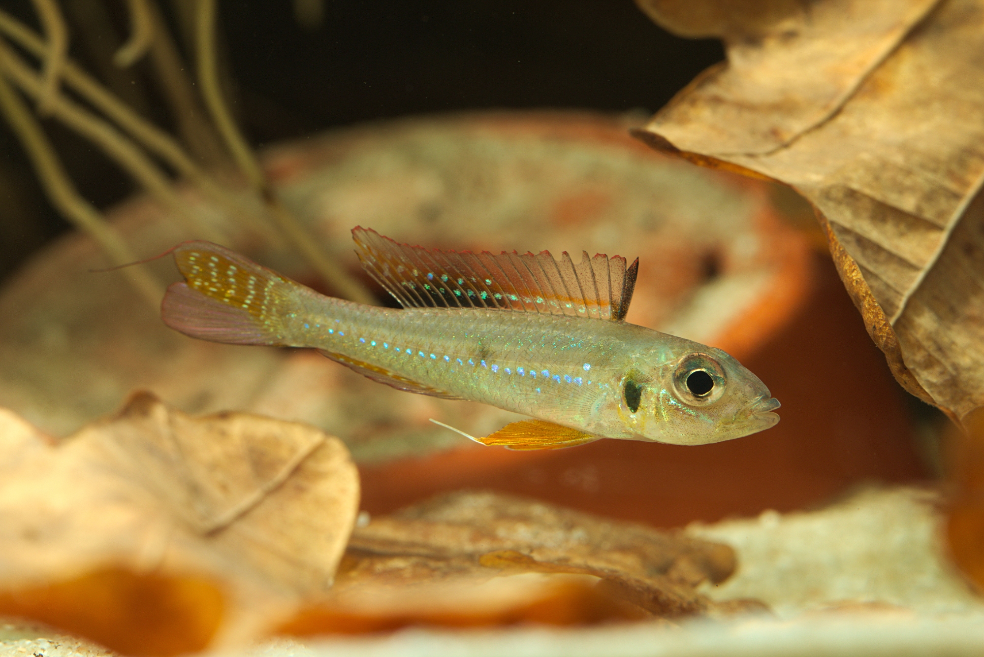Jungfische konnte ich leider nie beobachten, trotzdem balzten die Tiere regelmäßig und verschwanden in der Höhle. Nach erneuten heftigen Revierstreitigkeiten musste ich ein totes Männchen sowie ein Weibchen herausfischen. Die innerartliche Aggressivität unter B. opercularis ist wirklich hoch. Während sich die nah verwandten Dicrossus filamentosus auf dieser Grundfläche problemlos als Gruppe halten lassen, ist die Gruppenhaltung von B. opercularis anscheinend eine Herausforderung. Nachdem ich nun nur noch drei Tiere hatte, zogen diese in ein kleineres Aquarium mit einem Volumen von 100 Litern und den Maßen 80x30x40 cm (LxBxH) um. Auch dort balzte das Pärchen regelmäßig und bereitete ab und zu einen umgedrehten Tontopf vor. Auch hier konnte ich nie Jungfische beobachten.