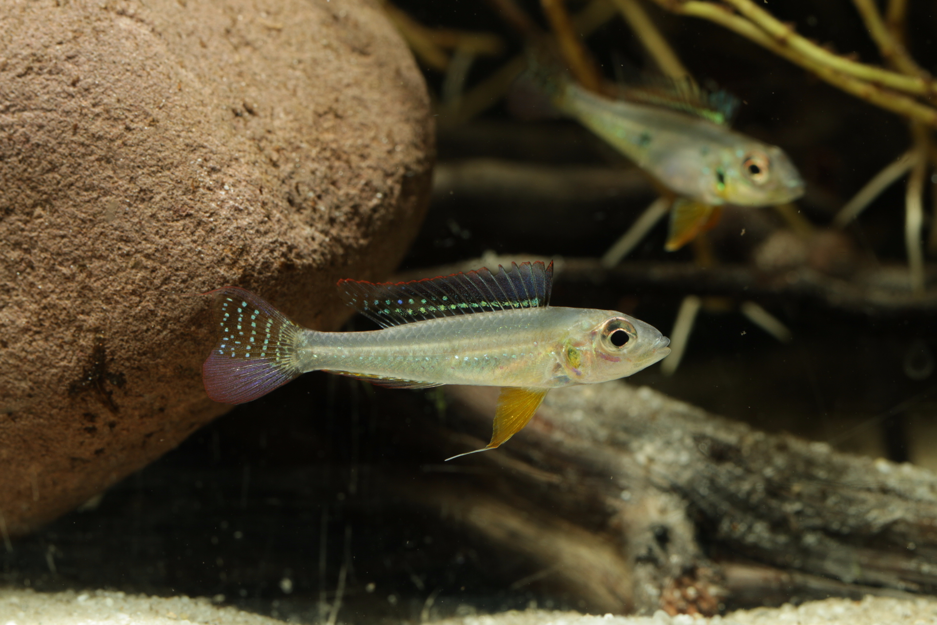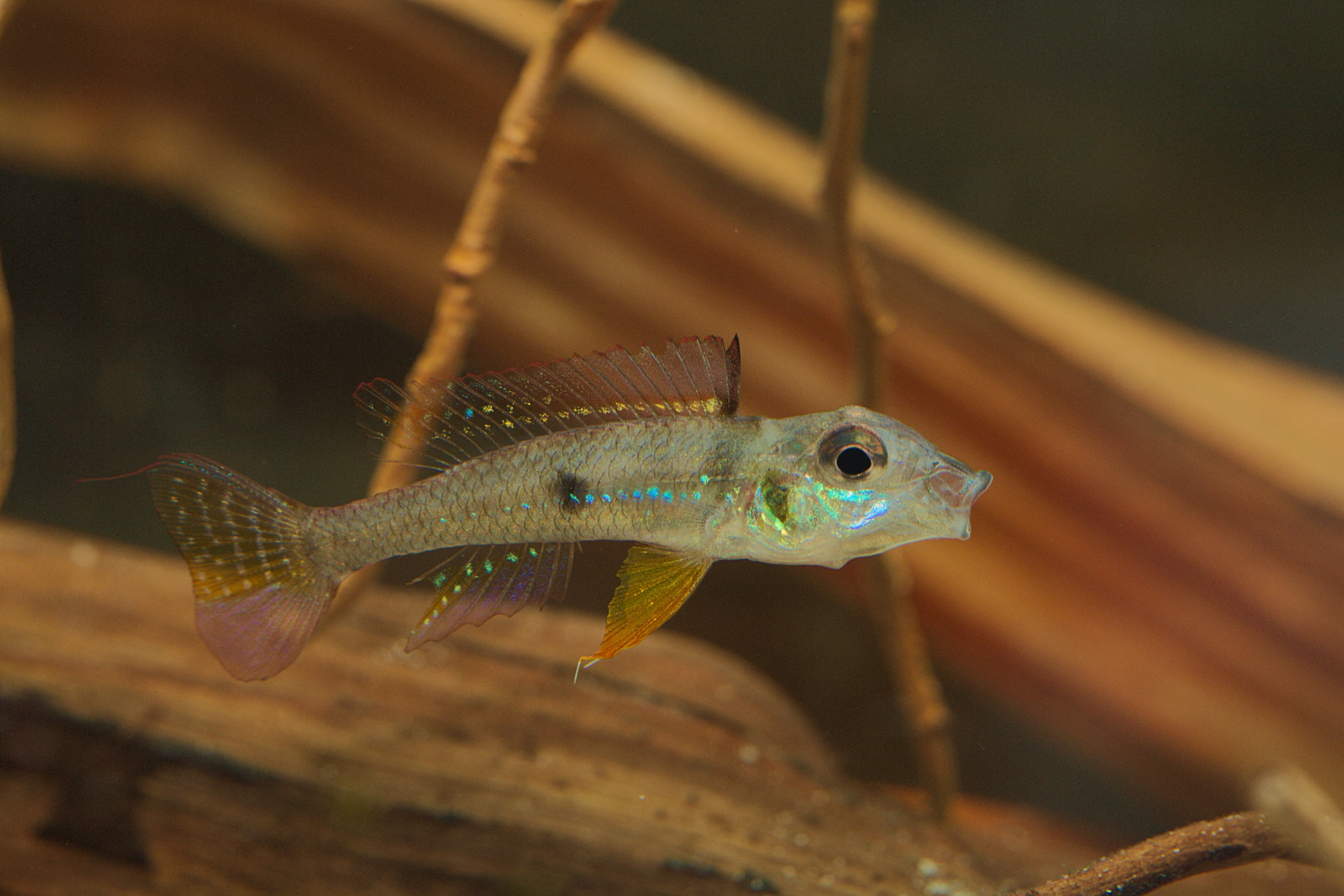 Eine Gruppe von 5 jungen B. opercularis Wildfängen saß recht unscheinbar in einem Verkaufsbecken bei Thomas Tillmann. Die Tiere standen eng beieinander und sahen zunächst recht farblos ja fast schon trist aus. Was aussieht wie ein unscheinbarer Beifang ist jedoch eine der schönsten Zwergbuntbarscharten die es gibt.