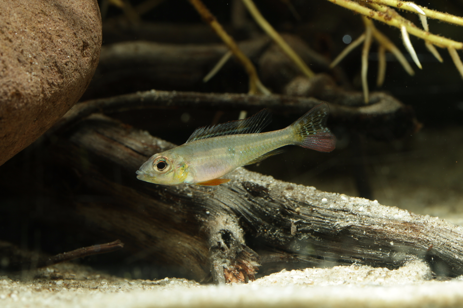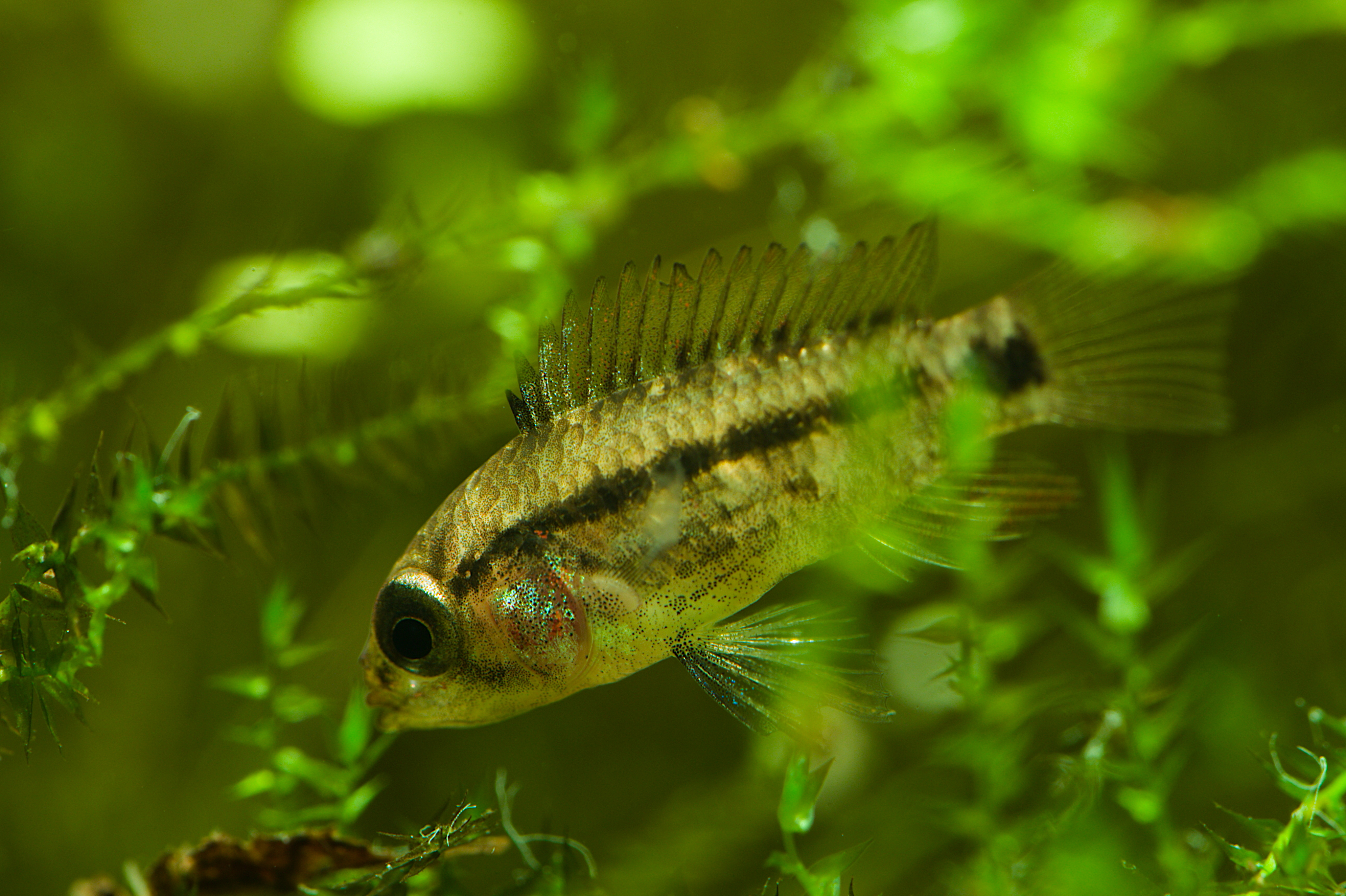 Eine Gruppe von 5 jungen B. opercularis Wildfängen saß recht unscheinbar in einem Verkaufsbecken bei Thomas Tillmann. Die Tiere standen eng beieinander und sahen zunächst recht farblos ja fast schon trist aus. Was aussieht wie ein unscheinbarer Beifang ist jedoch eine der schönsten Zwergbuntbarscharten die es gibt.