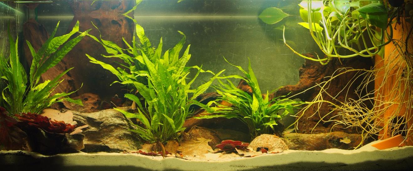 A. commbrae lässt sich problemlos in kleinen Aquarien halten (60x30x30 cm). In einem solchen 54 Liter Standard-Becken pflegte ich zunächst meine Gruppe bestehnd aus 6 Tieren, die ich im Februar 2018 kaufte. Als die Tiere im darauffolgenden Jahr größer und mittlerweile geschlechtsreif waren, hielt ich die Tiere über die Sommermonate (Juni bis September) in einer Mörtelwanne (Abmessungen etwa 80x40x40 cm). In der Mörtelwanne lebten die Tiere nicht auf Sandboden, sondern Mulm. Als Laichhöhle dienten umgedrehte Tontöpfe mit einem Loch auf der Bodenseite (Durchmesser etwa 2 cm). Im Hochsommer laichten die Tiere erstmals in einem solchen Blumentopf ab, jedoch kamen keine Jungen hoch. Als die Temperatur in der Mörtelwanne gegen Ende September immer weiter sank und nachts einstellige Temperaturen drohten, holte ich die Fische rein. Im Zuge dessen zogen die Tiere direkt in ein größeres Aquarium mit den Maßen 100x60x40 cm (LxBxH) [=240 Liter] ohne weiteren Beibesatz. Als Bodengrund brachte ich lediglich ein bisschen Sand ein, der nur 1/3 des Bodengrunds bedeckte. Kurzerhand entschloss ich mich den gesamten Inhalt der Mörtelwanne aus dem Garten in das Aquarium zu kippen. Da die Mörtelwanne vor bzw. unter einer Bambushecke (Pseudosasa japonica) stand, bestand der Mulm vor allem aus sich zersetzenden Bambusblättern. Da in der Literatur immer wieder beschrieben wurde, dass die Tiere in dicht verkrauteten Uferzonen leben, brachte ich eine große Portion Moos ein und einige Zweige einer Korkenzieherweide. Ebenso ragten die Wurzeln einer Monstera in das Aquarium. Die Wasseroberfläche war von einer dichten Decke aus Muschelblumen und Salvinia bedeckt. Aus einer Schaumstoff-Unterlegmatte schnitt ich ein Oval und nutzte dies als Begrenzung der Schwimmpflanzendecke, um genügend Licht für das Moos durchkommen zu lassen.